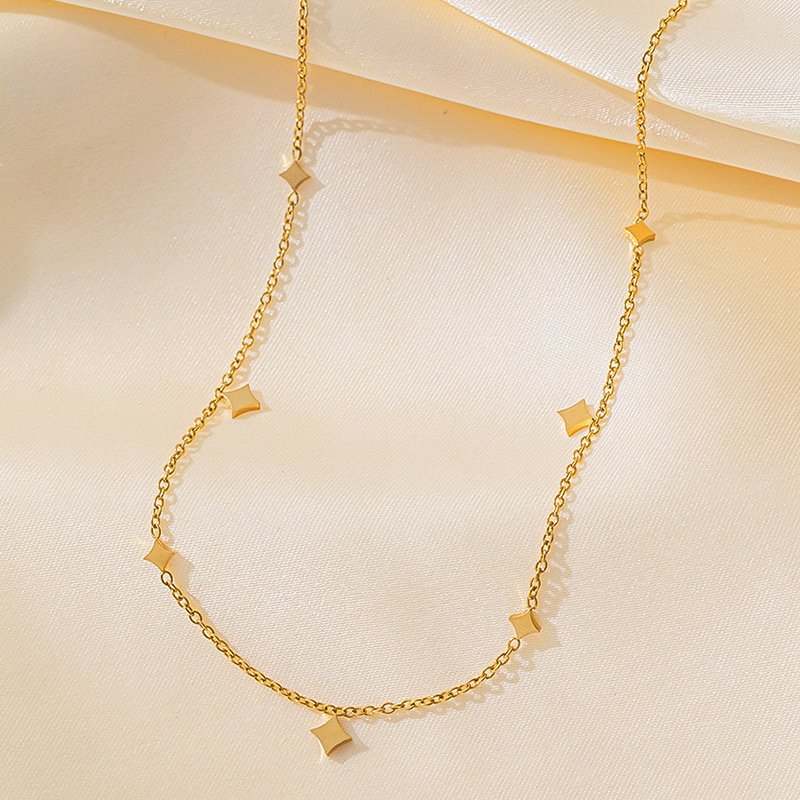 ANENJERY 316L Stainless Steel Multiple Flower Star Imitation Pearls Necklace for Women Vintage Ins Fashion Jewelry Gifts Daily