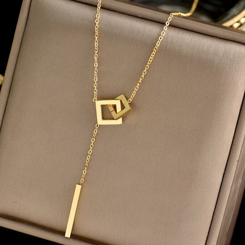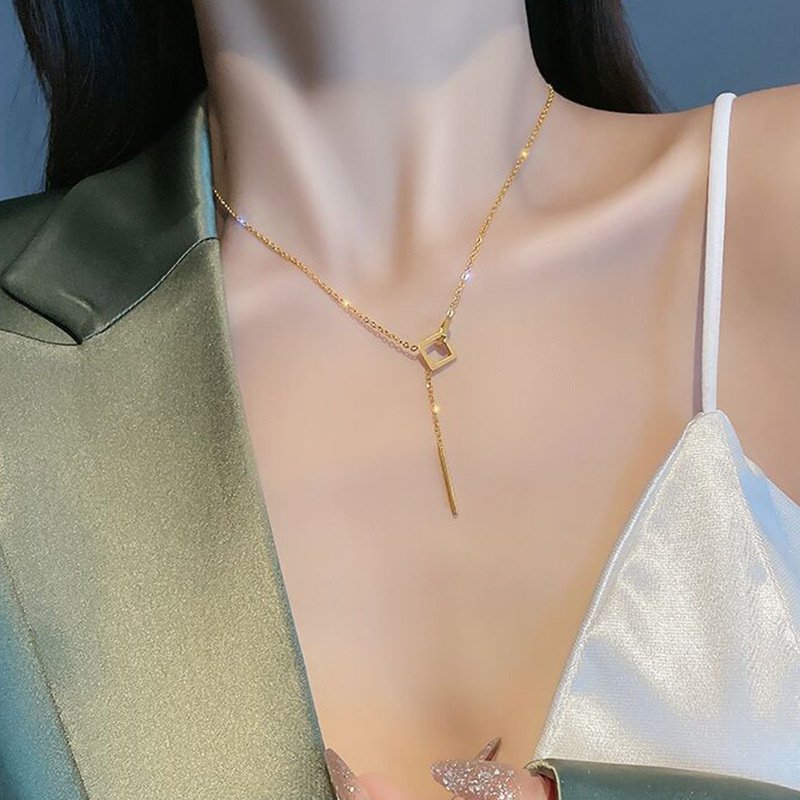 Creative Geometric Hollow Cross Square Pendant Necklace for Women Korean Fashion Kpop Punk Chain Necklace Party Jewelry Gifts