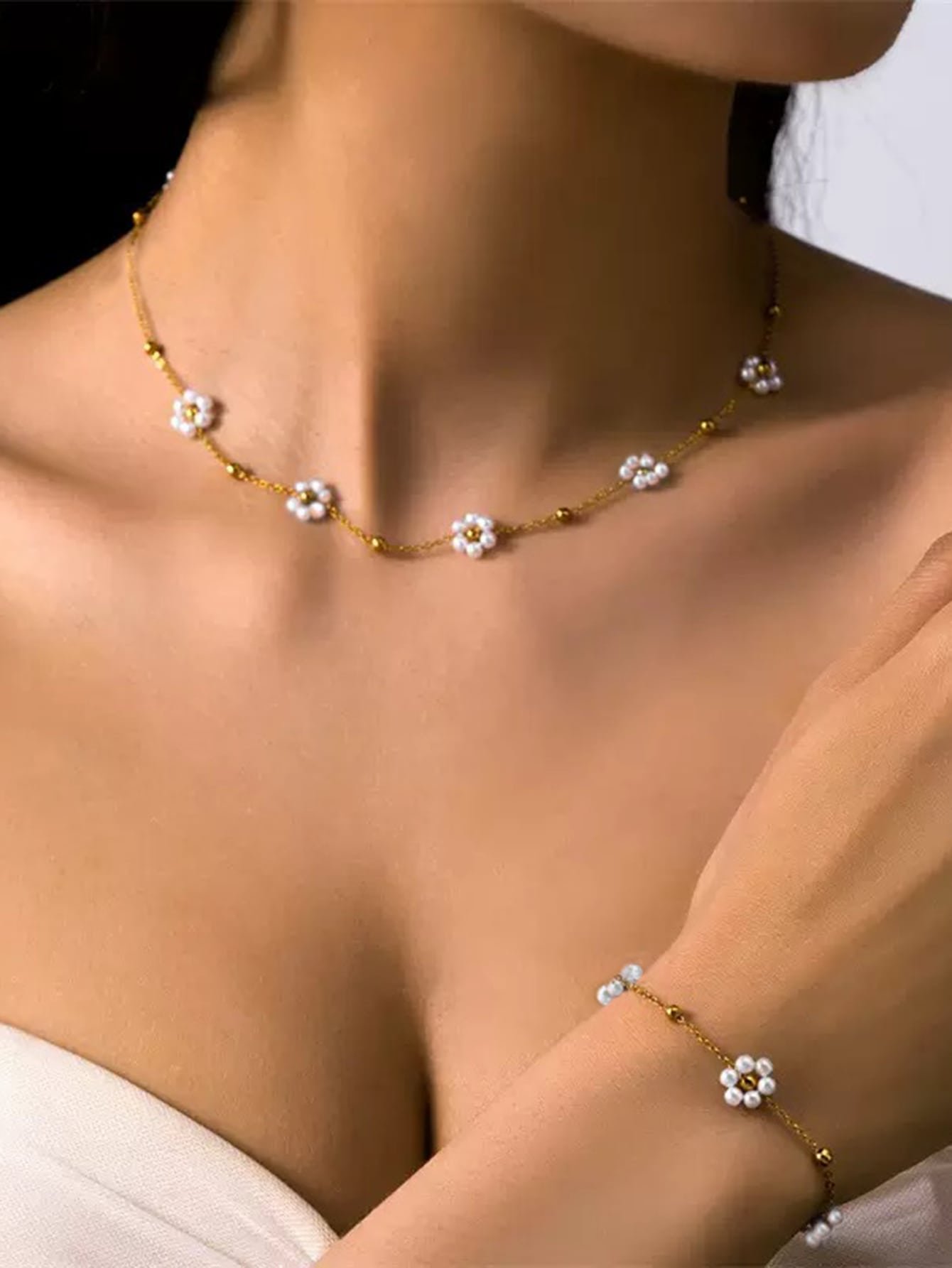 đ⨠Daisy Faux Pearl Necklace & Bracelet Set â¨đ