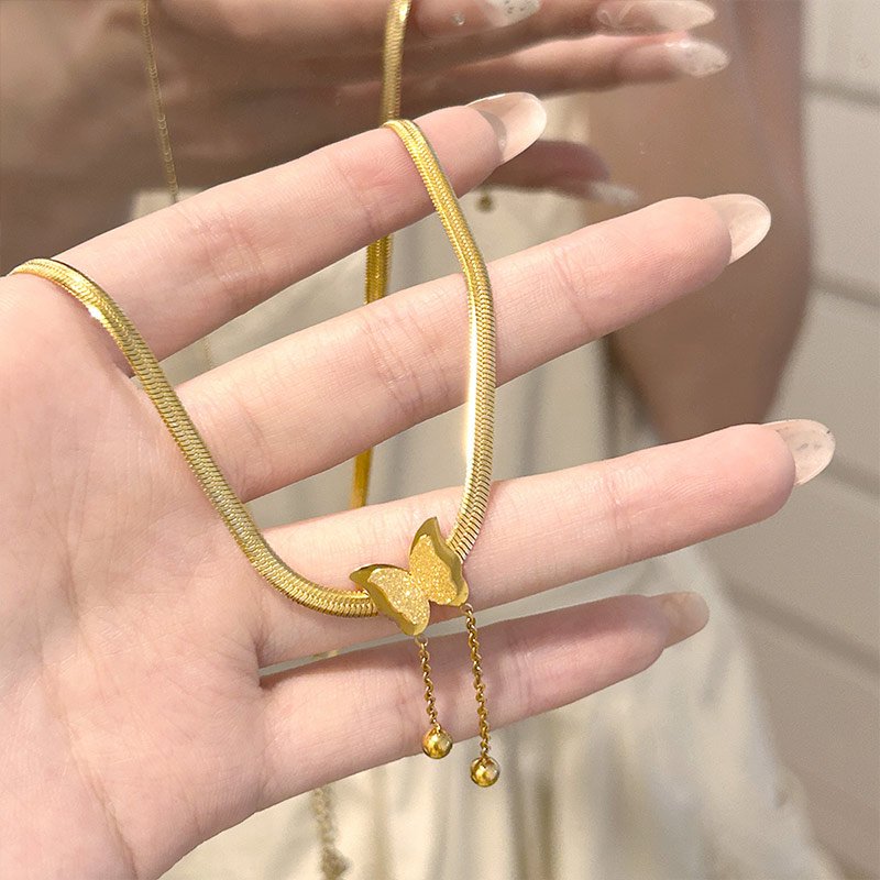 Fashion Exquisite Gold Color Butterfly Tassel Pendant Necklace for Women Simple Metal Style Ladies Party Jewelry Birthday Gift