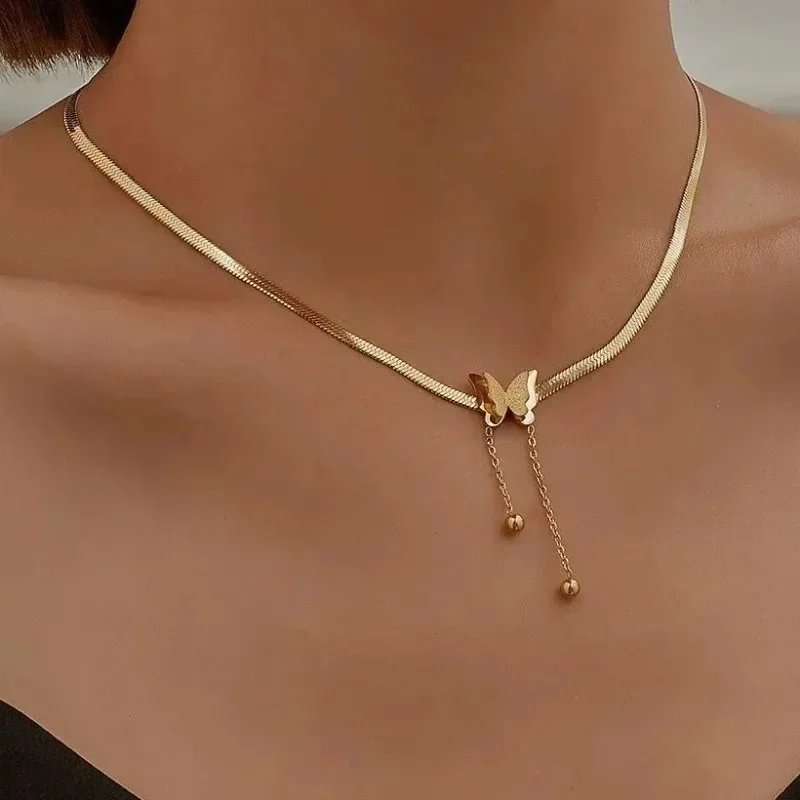 đš Premium Gold Color Metal â Long-Lasting & Non-Fadingđš Elegant Butterfly Tassel Pendant đĻ