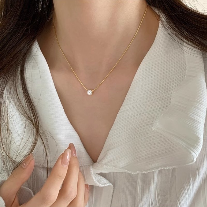 Gold Plated Zircon Necklace Dainty CZ Charm Pendant Minimalist Chain Jewelry Anti Tarnish Women Gift Round Birthstone Accessory
